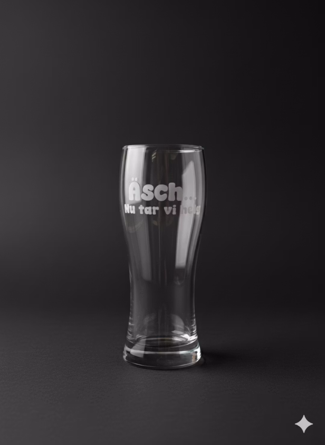Detta glas med den roliga texten "Äsch nu tar vi helg" är det perfekta valet för fredagsmyset. Tvättas i diskmaskin.